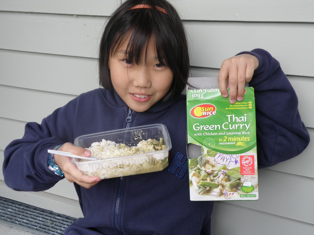 วันนี้เด็กหลายคน นำ Ready Meal อาหารไทยที่ซื้อมาจก Countdown ตั้งแต่เมื่อวันที่ไปโบว์ลิ่ง มาให้ครูเช่วยเวฟเป็นอาหารกลางวัน กินกันอย่างเอร็ดอร่อย