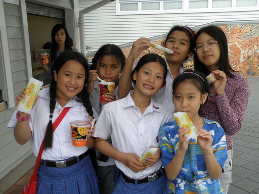 ในช่วงพักกลางวัน เด็กๆ ติดใจอาหารนานาชาติอย่าง Cup Noodles จึงฟ้องมาด้วยภาพนะคะ หลายคนเตรียมอาหารกลางวันมาแล้วเป็นอย่างดี แต่ก็อดที่จะวิ่งไปเข้าคิวซื้อที่ canteen ไม่ได้