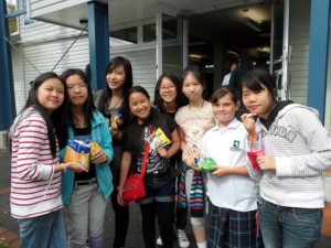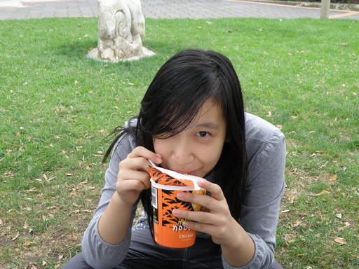 เมื่อถึงเวลาอาหารกลางวัน ใครมีไรก็แบ่งปันกันไป ส่วนใหญ่เป็นเมนูนานาชาติ โดยเฉพาะ Cup Noodles!!! เอร็ดอร่อยกันไปในวันที่อากาศเย็นๆ และไม่น่าเชื่อว่าทางเดินหลังห้องสมุดที่แคบๆ จะเก็บแก๊งเราได้ครบถ้วนหน้า อบอุ่นได้อิก..กระทั่งฝนเทโครมลงมา รร ให้สัญญาณบอกเด็กๆ กลับเข้าห้องเรียน แก๊งเรากลับไม่ยอมขยับตัวกันไปไหน พอครูไล่ให้ไป มีหลายคนผลัดกันรำพึง