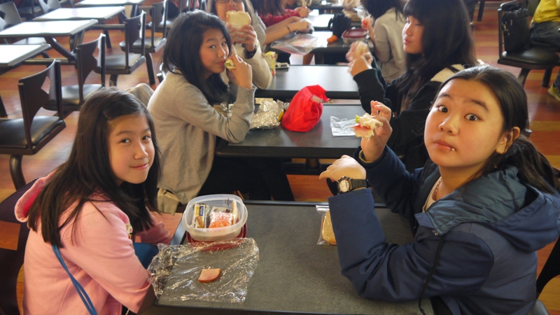 โรงเรียนที่สองคือ Gordon Head ค่ะ ไปตอนพักเที่ยงเหมือนเดิม แต่คราวนี้ครูกั๊กนั่งรถผิดสายค่ะ แทนที่จะได้ไปถึงเร็วๆ รถพาไปอ้อมชมป่าเขาต้นไม้ใบหญ้าซะตั้งนานกว่าจะถึงป้ายต้องลง ระหว่างทางเจอกวางตั้ง 3 แน่ะค่ะ เหลือเวลาอีก 20 นาที ลงจากรถปุ๊บ วิ่งเลยค่ะ กลัวมาก กลัวมาม่าผัดวันนี้จะไม่มีคนทาน วิ่งถึงโรงเรียนเสร็จ ทุกคนก็วิ่งมาหาที่รั้วหน้าโรงเรียน เจอกันแล้วครูกั๊กบอกเด็กๆว่า ครูขออย่างนึงค่ะตอนนี้.. ขออะไรคะครู.. ครูขออากาศค่ะ หายไม่ทัน วิ่งมาเหนื่อยมาก ลืมคิดถึงอายุไปหน่อย