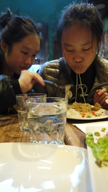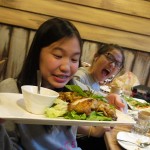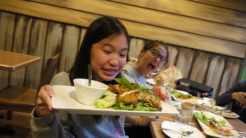 อาหารมา ก็ทานกันอย่างมีความสุข แล้วซักพัก น้องจิ๊กซอว์ก็บอกว่า.. หมดนี่แล้ว เดี๋ยวไปต่ออาหารไทยกันค่ะครู ทุกคนมองหน้ากัน แล้วก็บอกว่า.. เอาเลยยยยย ก็รอดูค่ะว่าทานกันหมดแล้วจะสรุปว่ายังไง ก็.. สรุปว่าไปทานอาหารไทยกันต่อจริงๆค่ะ ครูยุ้ยกับครูกั๊กมองหน้ากัน.. เอาเลยค่ะเด็กๆ ไปเลยยย ร้านนี้จัดร้านน่ารัก ได้บรรยากาศไทยๆดีเหมือนกันค่ะ เป็นโอกาสดีของเด็กๆที่ได้สั่งอาหารไทยเป็นภาษาอังกฤษกันค่ะวันนี้ 😀