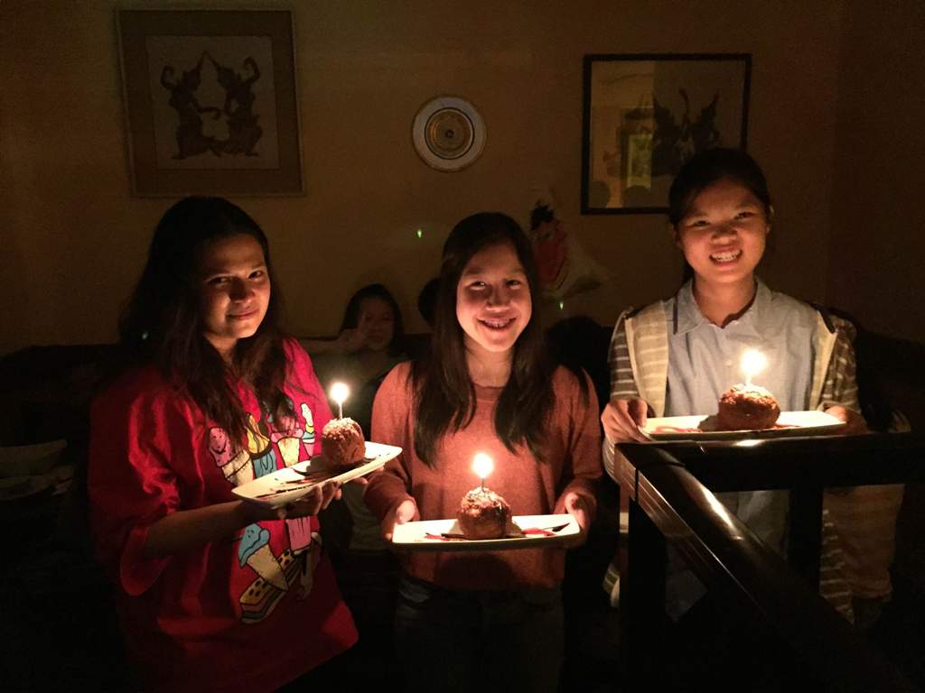 หลังจาก ทุกคนดูอิ่มอร่อยจากอาหารคาวแล้ว ครูยุ้ยกับครูกั๊กก็ได้เวลาทำ Surprise ให้เด็กๆ 2 คนที่มีวันคล้ายวันเกิดวันนี้กันค่ะ (18 เมษา) แถมด้วยอีก 1 คนที่วันคล้ายวันเกิดผ่านไปเมื่อวันที่ 24 มีนา ไม่มีเค้กนะคะ เพราะซื้อไม่ทันจริงๆ เดินกันไปเรื่อยๆ อ้าว.. ไม่มีร้านขายเค้กแฮะ 555 เลยกลายเป็นไอศกรีมทอดของร้านช้อนทองคนละลูกแทนค่ะ ปักเทียนกันคนละเล่ม ปิดไฟ เป่า (ไอติม) เค้ก สนุกดีค่ะ 😀 นอกจากนั้นครูยุ้ยกับครูกั๊กก็ยังมีกล้วยทอดกับไอศกรีมแถมให้ทุกคนอีกหน่อย ค่ะ อร่อยกันมากกกจริงๆ เด็กๆบอกค่ะ ครูยุ้ยกับครูกั๊กทานไม่ทัน 😛