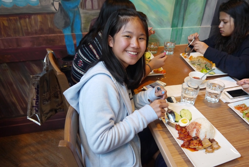 ส่วนเสาร์อาทิตย์ที่ผ่าน มาเราก็ไปค้างคืนที่ Sidney กันค่ะ เป็นเมืองเล็กๆน่ารักๆอยู่ติดกับ Victoria นั่ง bus ไปประมาณ 1 ชั่วโมงก็ถึงค่ะ ไปถึงเราก็เดินเล่นกันหน่อยนึง แล้วก็ checked in ที่ Travelodge ตอนบ่ายๆค่ะ ให้เวลาเด็กๆพักเกือบๆชั่วโมงแล้วก็พาเดินเล่นกันต่อ วันนี้ตอนเย็นครูยุ้ยกับครูกั๊กนัดพาเด็กๆไปทานอาหารไทยกันที่ร้านชื่อ ช้อนทอง ค่ะ ได้รับคำแนะนำมาจากผู้ปกครองและเด็กนักเรียนทริปแคนาดาเก่าของเราเอง เป็นร้านน่ารักๆ เจ้าของเป็นคนไทย กับข้าวก็อร่อยมากๆ รสชาดไทยๆเลยค่ะ น่าจะช่วยให้หายคิดถึงอาหารไทยไปกันได้บ้าง ทุกคนทานกันอย่างอร่อยเลย มีสั่งเพิ่มบ้าง ไข่เจียว ไข่ดาว หมูทอดกระเทียม ผัดไท ข้าวผัด ราดหน้า ผัดกะเพรา ผัดซีอิ๊ว ลาบ ปอเปี๊ยะทอด ข้าวซอย เพียบค่ะ 555