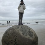 16:00 เดินทางกลับ ครูพาแวะให้ชม Moeroki Boulders เป็นสถานที่ท่องเที่ยวที่มีชื่อเสียง เป็นหินก้อนกลมดิ๊ก เรียงรายอยู่ที่ชายหาด มีตำนานเล่าขานว่า ชาวเมารีพายเรือมา แล้วทำ Kumara (หัวมันที่มีเฉพาะที่ NZ รสชาติหวานมันอร่อยมาก) ตกในทะเล ลอยมาติดที่ชายฉาดและกลายเป็นก้อนหินในปัจจุบัน บางคนก็บอกมันเป็นอุกาบาตรที่ตกมาจากฟ้า ส่วนนักวิทยาศาสตร์บอกว่ามันเป็นโคลนที่เกาะตัวกันจนเป็นหินและโดนคลื่นลมเป็นระยะเวลานานจนกลมดิ๊กแบบนี้ ลมแรงมาก หนาวยะเยือก วิ่งเล่นชายทะเลชมหินกัน ก็เดินทางกลับ Timaru กว่าจะถึงก็เย็นมากละค่ะ แยกย้ายกันกลับบ้าน