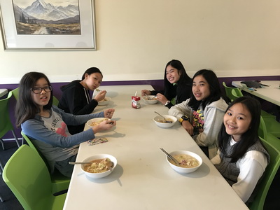เช้าวันที่ 13 พอตื่นนอนมา ก็ได้ทราบข่าวว่าพายุ cyclone จะเข้าตอนบ่าย โดยก่อตัวที่ Bay of Plenty ทางเกาะเหนือของ NZ ทาง Air New Zealand ประกาศให้ติดตามว่าจะมีการเลื่อนหรือยกเลิกเที่ยวบินหรือไม่ ครูตั้ง notification alert ของเที่ยวบินที่เราจะบินไว้ โชคดีมากที่เราบินวันที่ 14 ซึ่งพายุเคลื่อนตัวมาทางใต้แล้ว และเราก็ไม่ได้อยู่ในเส้นทางของพายุด้วยค่ะ ตอนขึ้นเครื่องที่ Christchurch ฝนตกค่ะ แต่พอเครื่องขึ้นไปแล้วก็ท้องฟ้าแจ่มใส พอถึง Auckland ครูจ้่างรถ mini bus มารับเราที่สนามบิน เพราะสงสารเด็กๆถ้าต้องแบกกระเป๋าใบใหญ่ขึ้นๆลงๆ free shuttle bus ไป international airport พอถึง international airport นำกระเป๋าไปเช็คอินเรียบร้อยแล้ว ครูก็ปล่อยให้เด็กๆไปทานอาหารกลางวันที่ food court อิ่มหนำแล้วก็ผ่าน ตม.เข้าด้านใน เดินชอปปิ้งต่อนิดหน่อยค่ะ ที่สนามบิน Auckland นั้น ไม่มีฝนเลย ท้องฟ้าแจมใสค่ะ