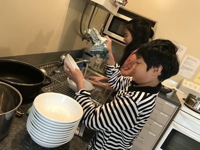 ครูรีบตื่นมาทำอาหารแต่เช้า สักพักก็มีเด็กๆทยอยมาช่วยหลายคน ติตี้ ปริม แทมมี่ อิม ไอ๊ซ์ ริน ฯลฯ ทุกคนที่เดินเข้ามา จะพูดว่ากลิ่นหอมมากกกกกก วันนี้เครื่องครบค่ะ หมูทอดกระเทียมพริกไทยของเรารสชาติ authentic Thai นะจะบอกให้ อิอิ ครูมีแตงกวาและ lettuce วางแยกไว้ให้ข้างๆสำหรับคนชอบทานผักค่ะ ทุกคนช่วยกันเก็บล้าง เช็ดโต๊ะ ทำความสะอาด น่ารักที่ซู็ดดดด