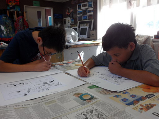 พี่เท็ดดี้กำลังร่างกรอบรูป เป็นขั้นแรกในวิชาศิลปะในวันนี้