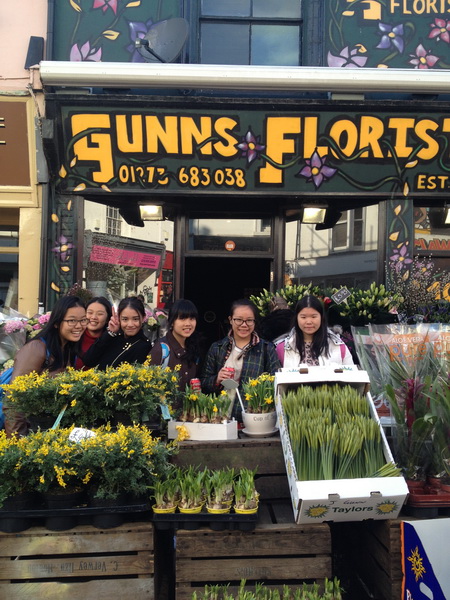 วันนี้ทุกคนรู้จักประหยัดเอา Lunchbox มาด้วย มีครูคนเดวที่ไม่เอามา เพราะกะว่าไปหาอะไรร้อนๆกินที่ Brighton ยังเช้าอยู่รถไฟไม่แน่นมาก มีแดดออกด้วยค่ะ ขึ้นรถแปบเดวไช้ก็ควัก Lunchbox ขึ้นมากินซะแล้ว 555 บูมกับแนทนั่งฟังเพลงอย่างมีความสุข สาวๆก็เม๊ากันไป ชมวิวกันไป ประมาณ 30 นาที ก็ถึง Brighton เจอคุณพ่อคนนึงลงรถไฟมาเหมือนกัน แกมีสายจูงลูกชายแฝด 2 น่ารักมาก พวกเรายิ้มน้อยยิ้มใหญ่ในความน่ารักกันใหญ่ เราเดินมุ่งหน้าไป Brighton Pavilion กัน ระหว่างทางเราเดินผ่าน Market Street ที่เรียงรายไปด้วยร้านรวงสีสันสดใส 2 ข้างทาง ร้านที่ตั้งโต๊ะขายก็กำลังทยอยจัดร้านกันอยู่ เพราะยังเช้า เด็กๆบอกเสร็จแล้วอยากกลับมาเดินที่นี่อีกรอบ ได้เลยค่ะ จัดให้ ถึง Pavilion ซึ่งเป็นวังตากอากาศของ King George IV ทุกคนได้รับเครื่องฟังเป็นภาษาอังกฤษ เดินชมส่วนต่างๆ อย่างกระตือรือร้น สนใจและตั้งใจฟังกันดีมากๆ น่าชื่นใจ แล้วเราก็พบ Tearoom ใน Pavilion เด็กๆไม่รีรอ รีบเข้าไปหาที่นั่ง สั่งเครื่องดื่มกัน สองหนุ่มผู้ดีอังกฤษสั่งชามาดื่ม จิบไปก็ชมไปว่าหอมอร่อย ส่วนอีกหนึ่งหนุ่มสั่ง organic cola ครูก็เง็งจริงๆว่า cola มันจะ organic ได้อย่างไร หลอกกันป่าวเนี่ย อิอิ สาวๆ สั่ง hot chocolate รสชาตดีมาดื่มแก้หนาว แล้วก็นั่งเต๊ะท่าวางมาดกัน ใช้เวลาใน Tearoom นานพอควร จนครูต้องเตือนให้ไปกันเถอะ เราเดินใน Pavilion ต่อจนจบ