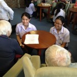 วันพฤหัสฯ เรามีกิจกรรมพิเศษตามที่ครูได้เกริ่มไว้วันก่อน หลังจากเราเรียนหนังสือกันตามปกติ Ms.Liz ก็ซักซ้อมเด็กๆเพื่อเตรียมที่จะไปพูดคุยกับเหล่าผู้สูงวัยที่ Venton Centre เช่น คำถามและคำพูดอะไรที่ควรและไม่ควรพูดตามมารยาทที่ดี เราซ้อมร้องเพลงกันอีก 1 รอบ วันนี้ทุกคนใส่เครื่องแบบนักเรียนของเมืองไทยมา ส่วนบูมกับแนทที่ไม่ได้เอาชุดมา ก็มีสปิริตไปซื้อเสื้อเชิ๊ตขาวมาใส่อย่างเรียบร้อย ทุกคนดูภาคภูมิใจกับเครื่องแบบของโรงเรียนตัวเอง โพสต์ท่าถ่ายรูปกันสนุกสนานออกแน้วทะเล้นตามประสาวัยรุ่น เมื่อถึงเวลานัดหมาย เราก็พากันเดินไปที่ Venton Centre ซึ่งอยู่ในทาวน์ข้างๆห้างนี่เองค่ะ ศูนย์แห่งนี้มีจิตแพทย์ และที่ปรึกษาด้านสุขภาพให้แก่สว.ด้วย เห็นป้ายเจ้าฟ้าชายชาร์ลมาเป็นผู้เปิดศูนย์เมื่อหลายปีมาแล้ว