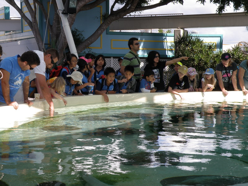 SeaWorld นั้นอยู่ติดทะเลและเป็นสถานที่ท่องเที่ยวที่เรียกได้ว่าเป็นศูนย์รวมของ ทุกอย่างเลยทีเดียว มีทั้ง aquarium, การแสดงของสัตว์ทะเล, บ่อฉลาม, บ่อกระเบน, หมีขาว, นกเพนกวิน, ปลาโลมา (หน้าตารับแขกสุดๆ) สวนสนุก และสวนน้ำ เด็กหลายคนบอกว่าอยากเล่นน้ำ แต่ครูป้านก็พยายาม convince สุดๆ เพราะครูป้านคิดว่าน้ำเล่นที่ไหนก็ได้และอีกอย่างน้ำก็เย็นทีเดียว ก็กลัวจะไม่สบาย อยากให้ดูการแสดงและเล่นสวนสนุกมากกว่า แต่เด็กๆก็ยังยืนยันอยากเล่นน้ำ ครูป้านมาคิดดูอีกทีว่าเราคิดแทนเด็กก็ไม่ถูก ในเมื่อเค้าอยากเล่นน้ำ มันเป็นความสุขของเค้า ก็เลยยอม พอครูป้านไฟเขียวถามว่าใครอยากเล่นน้ำบ้าง มีตั้ง 10 คน ครูป้านเลยพากลุ่มนี้ไปเล่นน้ำ มี ปริน ต้นไทร ป๊อป หลุยส์ น้ำผึ้ง หยก บิวตี้ แบมบี้ มินท์ เบล ส่วนพี่ี่ปุ่นไปกับ โม โอม พิน เอย เร กลุ่มสุดท้ายคือแพรว แสตมป์ โม ไอฟ้า สิชา ไปกันเองตามเคย